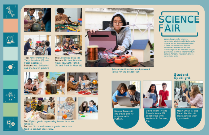 - For text, ensure there is contrast between the background and words on your yearbook spread