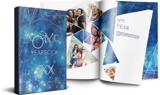 One of the best parts of the scrapbook yearbook theme is its flexibility. You can up the visual intensity depending on your staff’s skill level and your community’s taste. We have three complete yearbook themes that model scrapbook yearbooks.