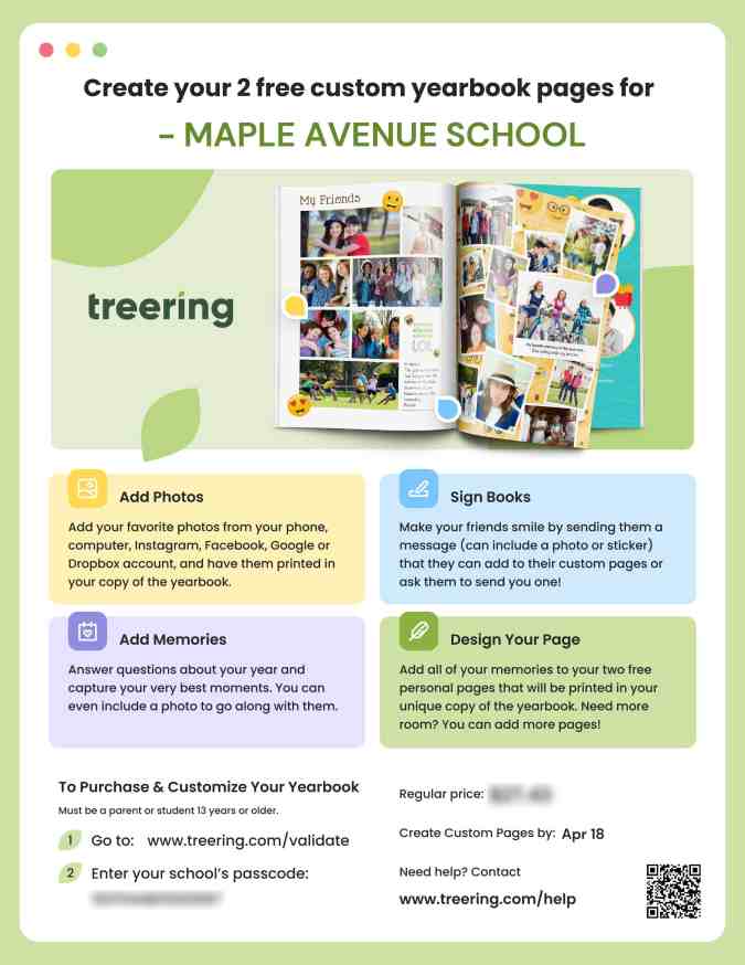 You’re building a yearbook, which is a mic-drop task in itself. People need to know how awesome (you are) the yearbook will be. Treering created flyers, QR codes, and personalized links for you to quickly share.