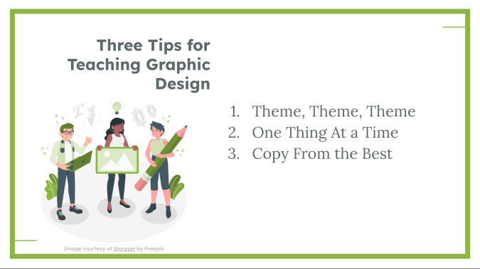 A theme does a lot of the graphic design work for you: it's like giving your students fill-in-the-blank notes as opposed to having them copy them by hand.