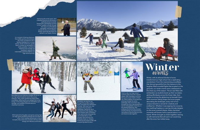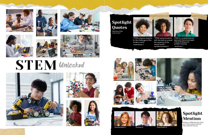 During the 2023 Editor’s Choice Design Contest, many submissions included a form of digital collage, adding depth to the stories and images across the spreads. Graphics such as hand-torn papers and transparent tapes adorn these modular layouts so you can pack pages with seasonal or quarterly content.